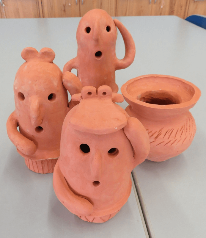粘土の形を整えて模様をつけて完成です。小さなお子様でも楽しく体験できますよ。